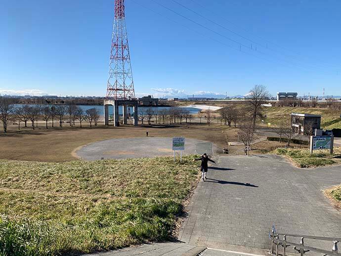 河川敷をしばらくいくと、バーベキュー広場やドッグラン、サッカーができる広場や子どもが遊べる遊具の広場があり、1日いても飽きなさそうです!