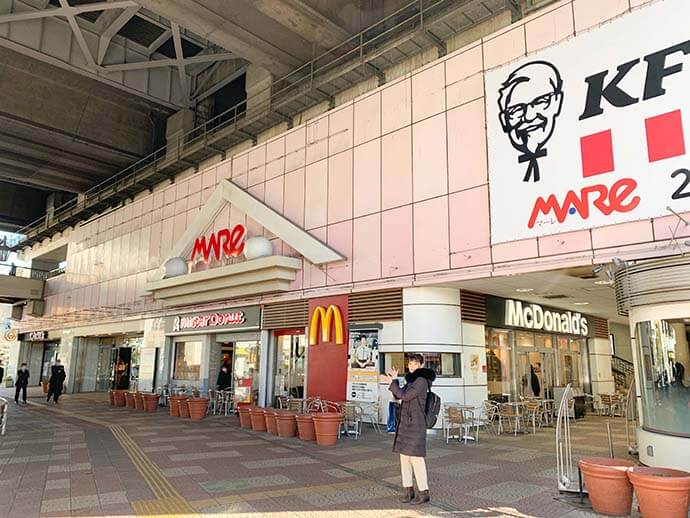 駅前にはファッション、雑貨、飲食店が入っている「マーレ」という商業施設もありますよ。