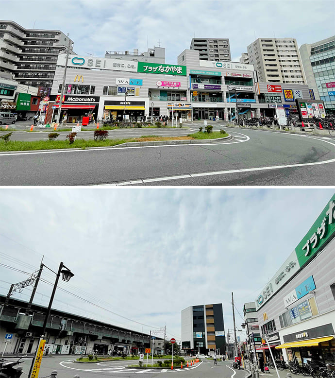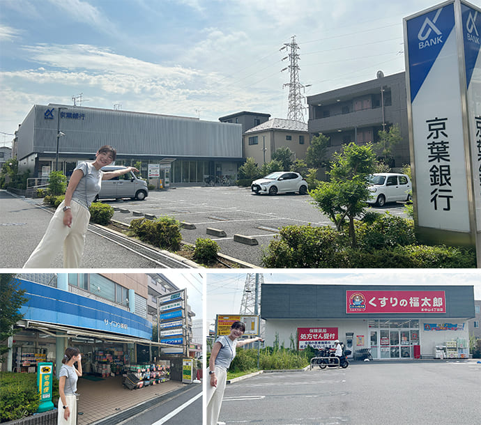 JR総武線「下総中山」駅の駅前のロータリー沿いにはカフェ・スポーツジム・スーパー・ファミリーレストラン・商業施設があり、駅前だけでも日常生活に必要なものはすべてそろう環境です!
