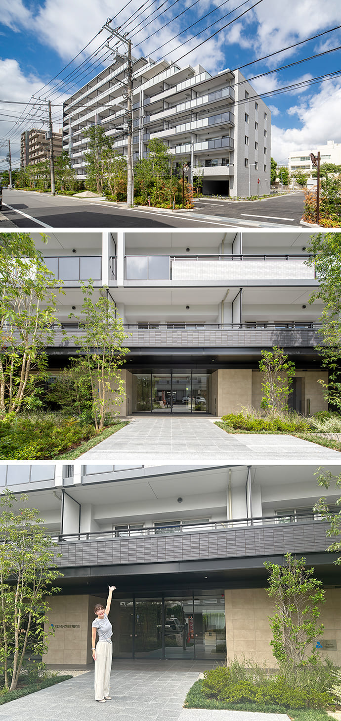 エントランスは道路から一歩奥まっていて、緑と落ち着いた石積みのアプローチが疲れて帰ってきた気持ちを癒してくれそう。また、一歩奥まっていることで子どもが急にエントランスを飛び出すことがあっても少し安心できそうです。