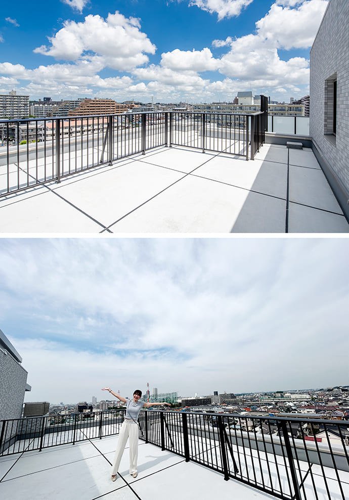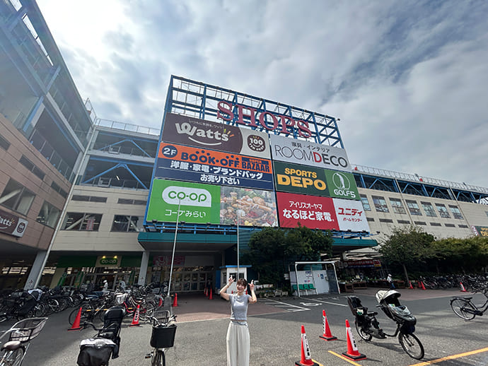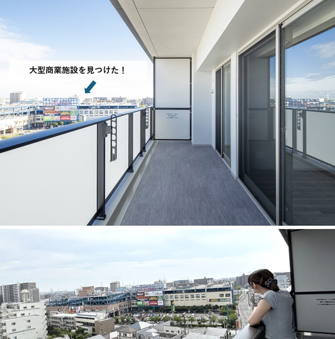 部屋を見ているときにバルコニーからマンションのすぐ近くに大型商業施設がありました!駅からのアプローチとは反対側だったので気づかなかったのですが、マンションの近くにこんなに大きな商業施設があるなんてすごく便利。